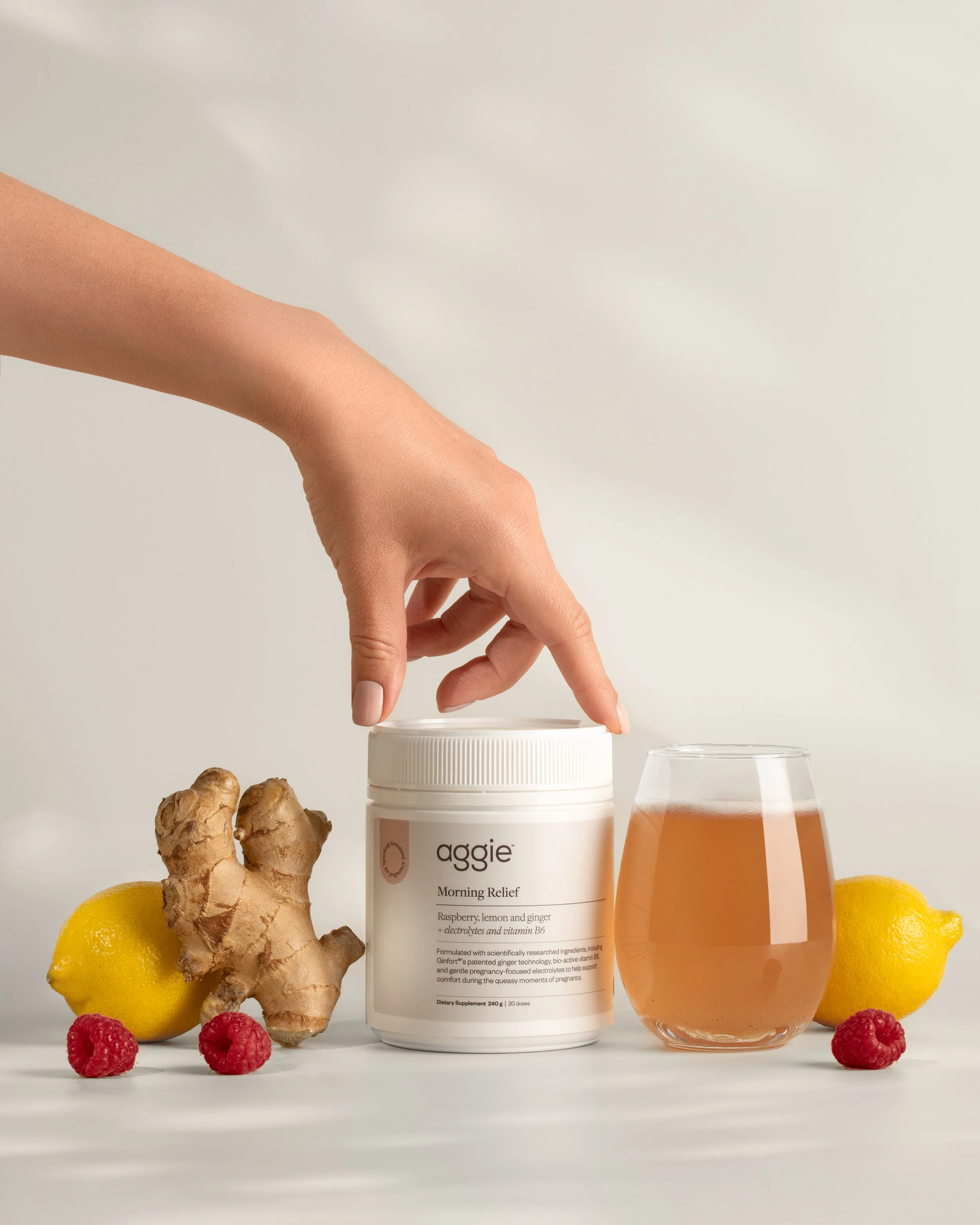 Morning Relief was formulated to address nausea and vomiting in pregnancy, affecting up to 90 percent of women, yet still underserved by effective over-the-counter solutions. Its hero ingredient, Ginfort, a patented ginger extract, delivers approximately twelve times more active 6-gingerol than standard ginger powders – compounds clinically shown to act on serotonin receptors in the gut. It is paired with vitamin B6 Pyridoxal-5-Phosphate, the bioactive, pre-converted form of vitamin B6, and essential electrolytes to support maternal depletion – an area often overlooked in standard pregnancy supplements.